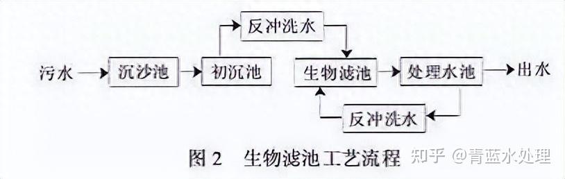9、生物滤池:其最大的特点是集生物氧化和截留悬浮固体于一体,节省了后续沉淀池,厌氧水解—高负荷生物滤池处理系统集初沉池、曝气池、污泥回流设施以及供氧设施等于一身,大大简化了污水处理流程。生物滤池工艺流程见图2。