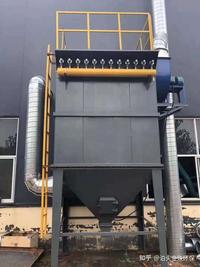 布袋除尘器在系统主风机的作用下,含尘气体从除尘器的进风口,进入除尘器的预收尘室,含尘气流在挡流板碰击下气流便转向流入灰斗。同时,流速减慢,在惯性及粉尘的自重作用下,较粗颗粒粉尘直接落入灰斗并从排灰机构卸出,起到了预收尘的作用;其它较轻细粉尘随气流向上吸附在滤袋的外表面上,过滤后干净的气体透过滤袋进入上箱体并汇集出风管排出。
