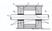 磁流体密封是一种新型的密封。磁流体旋转轴封的工作原理如图3所示,永久磁环2、极板 3和转轴(或套)4等构成磁路。在磁场作用下,吸附磁流体于静止的极板与转动轴之间的间隙通道中,形成流体O形环,将间隙完全封堵,并且具有承压能力,防止气(或液)体由高压侧向低压侧的泄漏,达到完全密封的目的。磁流体是一种大小为100×10-10m 左右的固体微粒(金属氧化物)悬浮于载液中的胶状流体。它具有流体的特点,在外界磁场的作用下才显磁性。选择不同的固体微粒或载液以及改变它们的组成配比,可得到不同性质的磁流体。