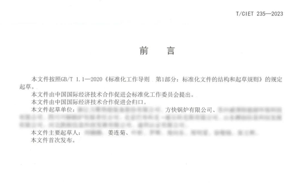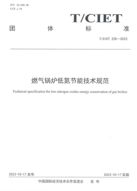 由方快锅炉有限公司参与起草的标准号为T/CIET 235-2023《燃气锅炉低氮节能技术规范》团体标准于2023年10月17日获中国国际经济技术合作促进会发布并正式实施。
