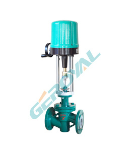 电动衬氟调节阀是由引进型电动执行器和衬氟调节阀阀体两部分组成。接收控制器发出的4-20ma或1-5V等模拟信号,控制阀门的开度,以达到调节管道介质流量、压力等参数的目的。电动衬氟调节阀和其它普通电动调节阀区别在于阀体,有的管道输送如硫酸、王水等强腐蚀性的介质,因为腐蚀性太强,普通金属材质的调节阀无法用于这种工况。而电动衬氟调节阀与流体接触的阀体内壁和阀内组件均采用高压注塑工艺,衬有能耐腐蚀、耐老化的聚全氟乙丙烯(F46),又采用聚四氟乙烯波纹管密封。解决了金属阀门无法用在强腐蚀介质的工况。广泛的应用于强腐蚀介质的工况管道。