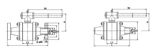 Q41N高压锻钢法兰球阀型号公称通径 DN(mm)LL1DD1MD2Z-φdbHLO重量