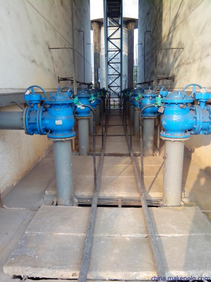 【液压、气动角式快开排泥阀】型号:J744X/J644X,是一种由液压源或气动源作执行的角型截止门。通常成排安装在沉定池底部外侧壁,用以排除池底沉淀的泥砂和污物。该阀液压缸之活塞为L形皮碗,密封性能好,经久耐用,阀门密封副亦橡胶密封,无泄漏。还可通过电动二位四通换向电磁阀实现远程控制。操作方便,安全可靠。