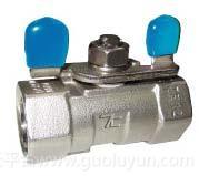 内螺纹连接球阀及对焊连接球阀分为整体式(一片式)、《蝶型把手一片式牙口球塞阀》。《一片式六角体球阀》|阀体铸造采用台湾引进的先进工艺,结构合理、造型美观。阀座采用弹性密封结构,密封可靠,启闭轻松。 阀杆采用有倒密封的下装式结构,阀腔异常升压时,阀杆不会被冲出。二片式、三片式球阀连接形式另有对焊(BW) 承插焊(SW),并均可带国际标准ISO支架平台和锁定装置。可设置90°开关定位机构,根据需要加锁以防止误操作,