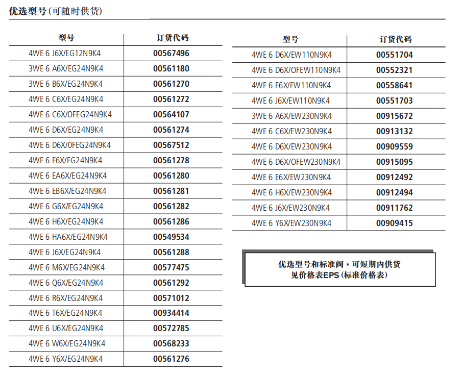 电磁阀:4WE6、4WE10、4WE16;电液阀:4WEH10H、4WEH16、4WEH25,
