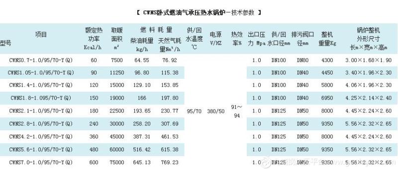 CWNS型全自动燃油(气)热水锅炉为快装卧式内燃三回程火管结构。采用偏置炉胆湿背式布置,高温烟气依次冲刷第二及第三回程烟管,然后由后烟室经烟囱排入大气。锅炉配置世界名牌燃烧器,采用了燃烧自动比例调节,给水自动调节,程序启停,自动运行等先进技术,并具有运行水温度控制、超温、超压熄火等自动保护功能。该型锅炉具有结构紧凑、安全可靠、操作简便、安装迅速、污染少、噪音低、效率高等特点,广泛适用于企业、宾馆、医院、写字楼、民用建筑等设施工业用汽和生活及采暖。