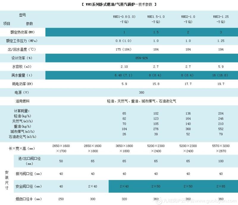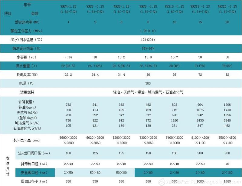 WNS型燃气锅炉为卧式快装内燃三回程火管锅炉。采用偏置炉胆湿背式结构,高温烟气依次冲刷第二及第三回程烟管,然后由后烟室经烟囱排入大气。锅炉装有活动的前后烟箱盖,使锅炉检修方便。锅炉配置技术性能良好燃烧器,采用了燃烧自动比例调节,给水自动调节,程序启停,全自动运行等先进技术,并具有高低水位报警和极低水位、超高汽压、熄火等自动保护功能。该型锅炉具有结构紧凑、安全可靠、操作简便、安装迅速、污染少、噪音低、效率高等特点。