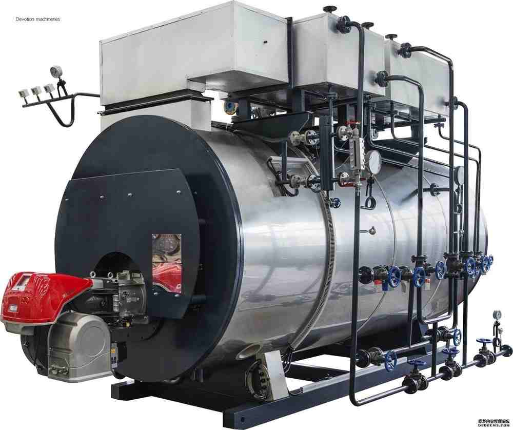 4、卧式蒸汽锅炉为锅壳式全湿背顺流三回程烟火管结构,火焰在大燃烧室内微正压燃烧,完全伸展,燃烧热负荷低,燃烧热效率高,有效地降低了排烟温度,节能降耗,使用经济。波形炉胆和螺纹烟管结构,即提高了锅炉的吸热强度,又满足了换热面受热膨胀的需要,科学合理,经久耐用。