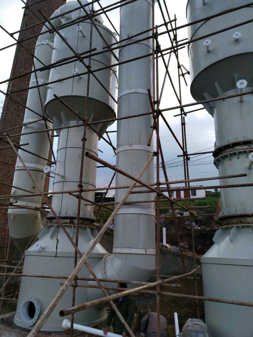 脱硫塔采用316L不锈钢制作,确保脱硫塔不会因腐蚀而停用。脱硫塔的中部是核心部件-气动乳化过滤单元,有16个过滤单元,每个高4.5m,内含2个旋流器,2个强传质乳化层的存在,确保了烟气中的SO2能稳定达标排放。脱硫塔的上方为除雾器,用来除去净化后烟气中夹带的水分。除雾器是塔的一部分,除雾器要求气流速度越小越好,速度小,水滴的动能小,便于捕捉,设计的速度约2.5m/s。