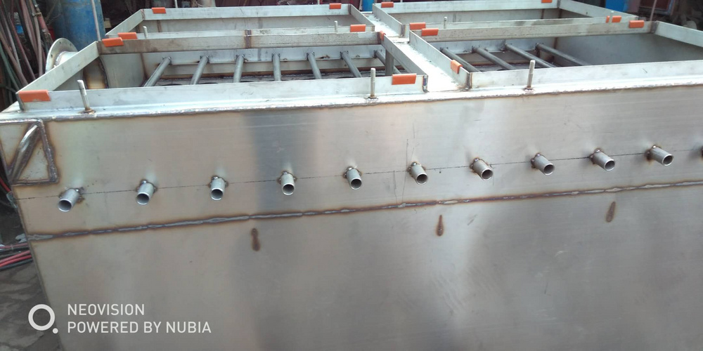 不锈钢脉冲除尘设备的工作原理是当含尘气体从除尘设备的进风均流管进入各分室灰斗,并在灰斗导流装置的导流下,大颗粒的粉尘被分离,直接落入灰斗,而较细粉尘均匀地进入中部箱体而吸附在滤袋的外表面上,干净气体透过滤袋进入上箱体,并经各离线阀和排风管排入大气。随着过滤工况的进行,滤袋上的粉尘越积越多,当设备阻力达到限定的阻力值时,由清灰控制装置按差压设定值或清灰时间设定值自动关闭一室离线阀后,按设定程序打开电控脉冲阀,进行停风喷吹,利用压缩空气瞬间喷吹使滤袋内压力聚增,将滤袋上的粉尘进行抖落至灰斗中,由排灰机构排出。