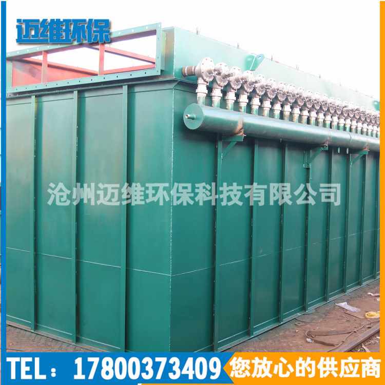 低压脉冲袋式除尘器的气体净化方式为外滤式,含尘气体由导流管进入各单元过滤室,由于设计中滤袋底离进风口上口垂直距离有足够、合理的气流通过适当导流和自然流向分布,达到整个过滤室内空气分布均匀,含尘气体中的颗粒粉尘通过自然沉降分离后直接落入灰斗,其余粉尘在导流系统的引导下,随气流进入中箱体过滤区,吸附在滤袋外表面。过滤后的洁净气体透过滤袋经上箱体、排风管排出。