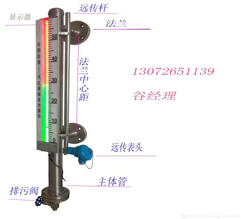 双色液位计是磁翻板液位计的换代产品,它以红绿光柱清晰显示液位,白天观察距离60m、夜间可达200-300m。磁翻板液位计长时间使用容易粘覆灰尘,尤其是炼钢厂,时间一长就容易粘覆细铁屑,把磁翻板的颜色覆盖,使它看不到液位,另外磁翻板液位计一个最大的缺点就是不能发光显示,夜间不能观察。TR-CDS-6系列智能智能磁敏电子双色液位计精选国内外优质电子元件,整机均经过各种性能测量和模拟试验及整机电老化试验,以保证液位显示精准可靠。
