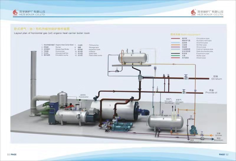 热载体炉是燃料(包括煤、油、气等)经过充分燃烧后产生的火焰和高温烟气进入炉体,以辐射传热和对流传热的方式与炉管内有机热载体换热,有机热载体在系统内由循环油泵实现闭路强制循环,同时,在炉体内获得热量的热载体,作为换热介质供热至用热设备,从而实现热载体炉对用热系统的供热。有机热载体炉,通常由无缝钢管盘成数组受热面,燃料在炉内燃烧,产生高温火焰与烟气,在受热面之间流动,有机热载体在炉管内以设计规定的流速流动,燃料产生的热能通过炉管壁传给有机热载体,使其升温,并向炉外输出。有机热载体燃煤炉通常可分为燃烧室和上部的炉本体两大部分,燃烧室与通常的蒸汽锅炉所用的基本上相同,可以是手烧固定炉排,链条炉排,往复炉排,反烧顶升炉排等等,炉排面与其上面的炉拱组成煤的燃烧室,燃料在燃烧室里燃烧产生高温火焰与烟气,被送入位于上部的炉本体,炉本体由无缝钢管盘成数组受热面,高温火焰与烟气在受热面之间流动,将热能通过炉管壁传给在炉管里流动的有机热载体,使其升温,并向炉外输出。