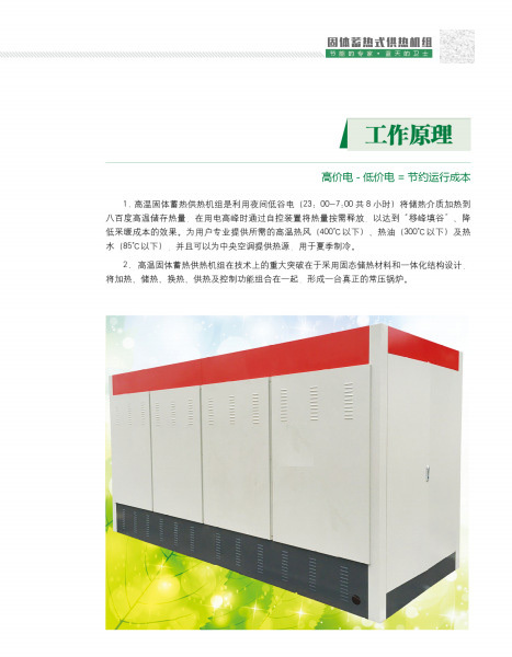 以高温空气为热交换介质为例:1、 低谷电锅炉,蓄热池外层采用高能绝热体,使高温蓄热池与外环境达到热绝缘。池中温度为800℃时,绝热体表面温度只有几十度。2、 储能式电锅炉,输出温度的稳定性采用多种方式控制,如进回水温差、出水恒定温度、输出总热量测定、负载温度波动平均值等。以上测检数值通过中央电脑处理后,将指令传输给各自动控制单元,对设备进行全自动无极化准确运行控制,精度控制在1℃区间内。3、 高压电直供锅炉,由发热介质将电能转换为热能后,通过热交换将热能存储于固体氧化镁蓄热池中。温度可从常温直至达到850℃以上。4、 二代蓄热式锅炉,通电加热时间及加热温度可根据负载和用户实际需要,任意设定,设备会根据设定值完全无人自动化运行。5、 新型锅炉,工况所需软化水,由设备附加的软化水系统自动补给。