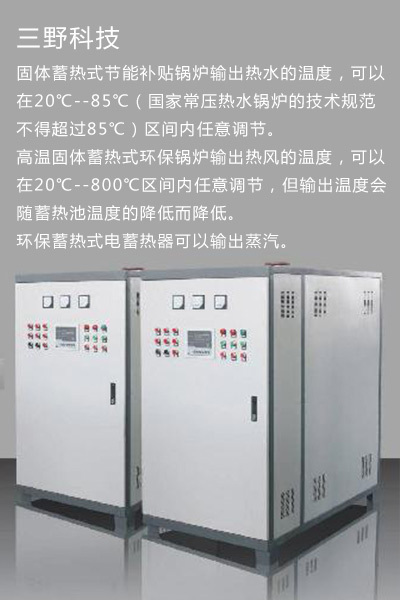 1.蓄热——电能转化为热能蓄能式电锅炉,利用电力公司提供的夜间低谷电,以电热丝或电加热管为加热元件,在夜间将储存在电锅炉内的蓄热介质进行加热,以实现将电能转化为热能的过程。